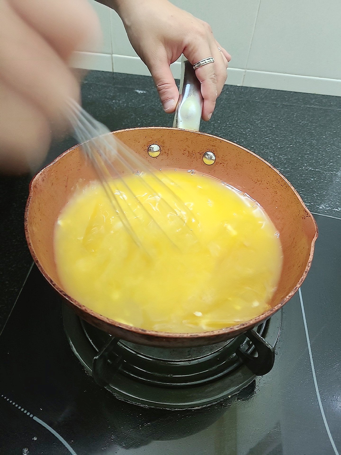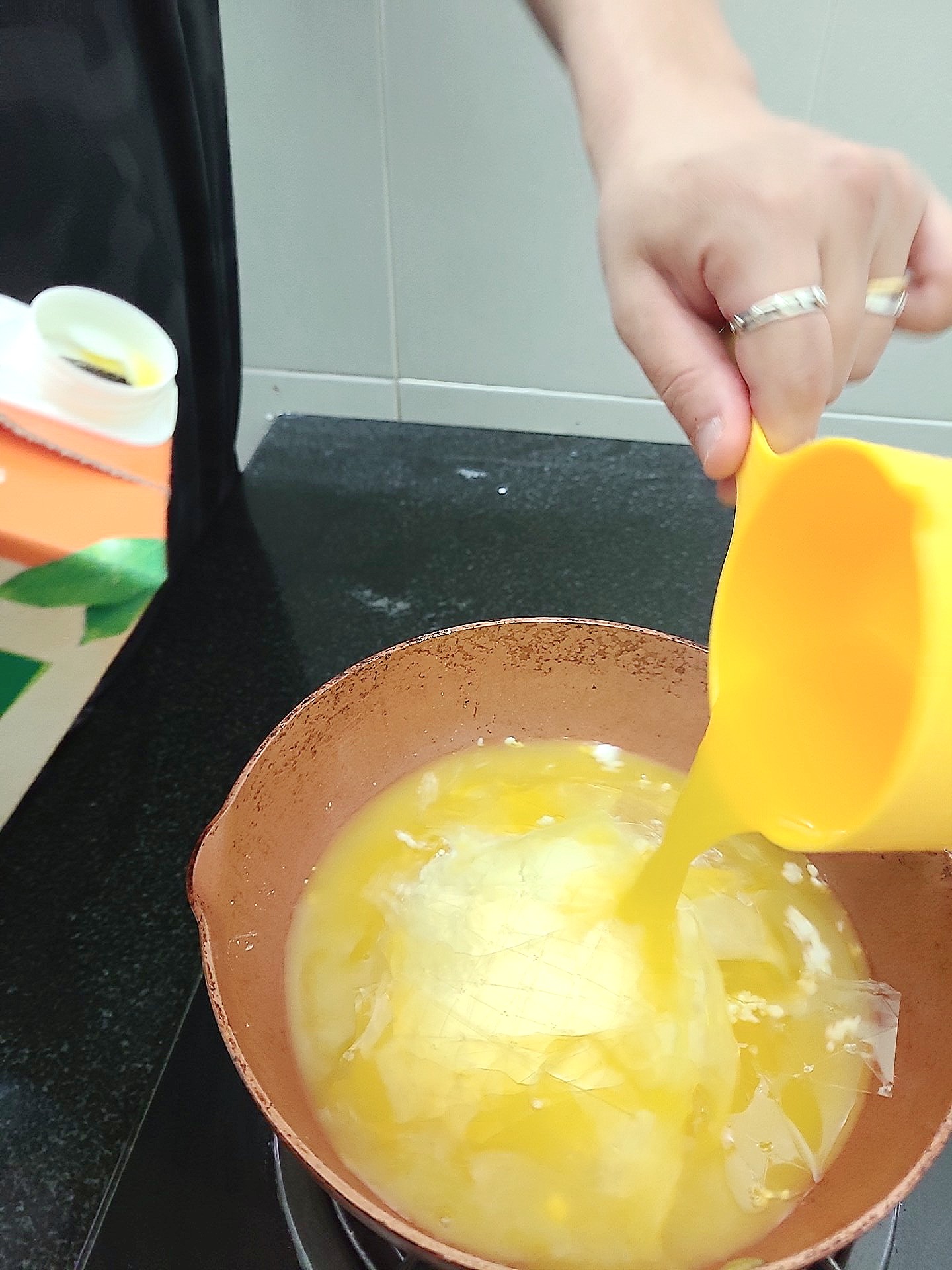 랩을 씌우고 적당히 미지근해진 내용물을 부었다.