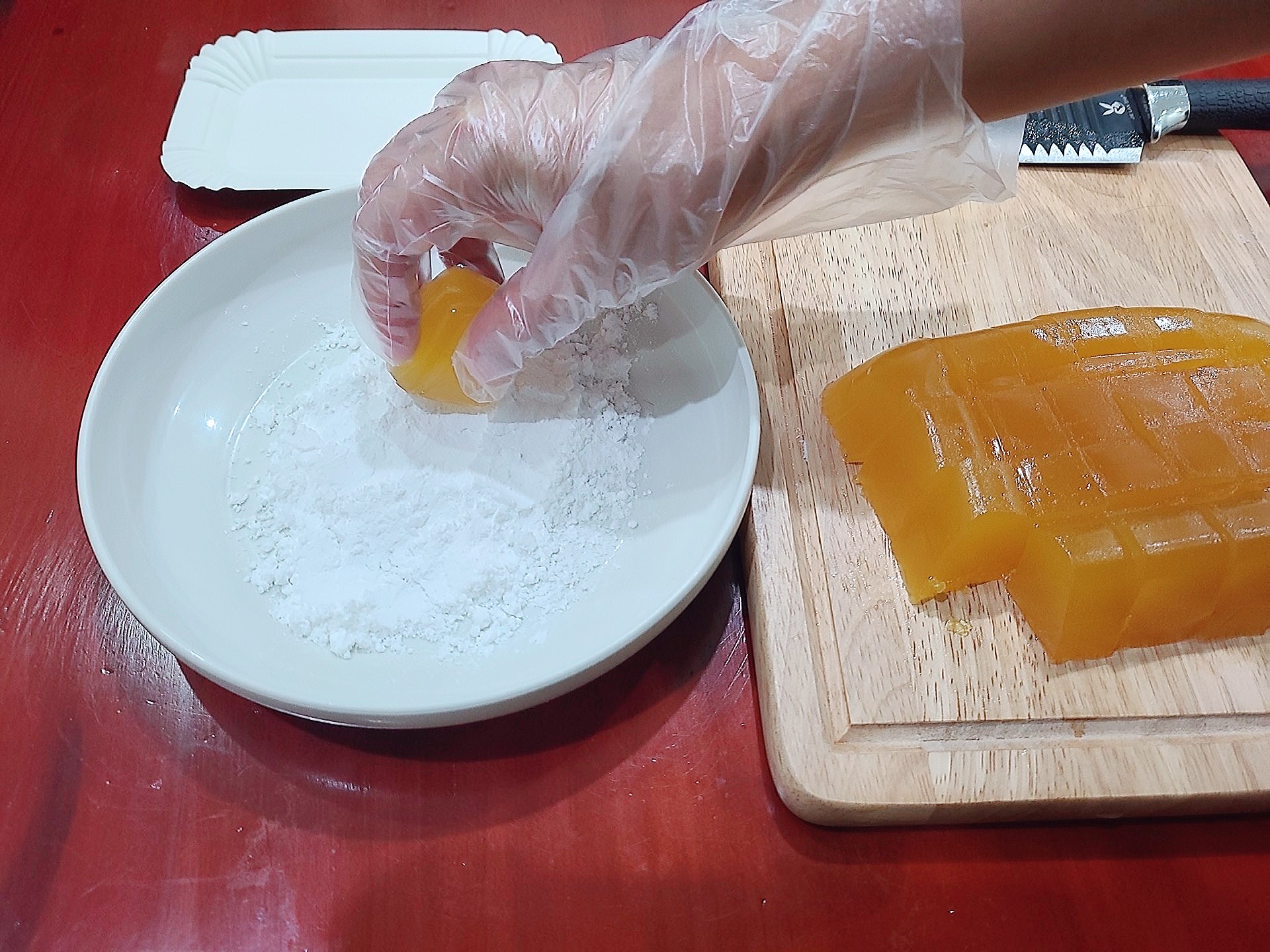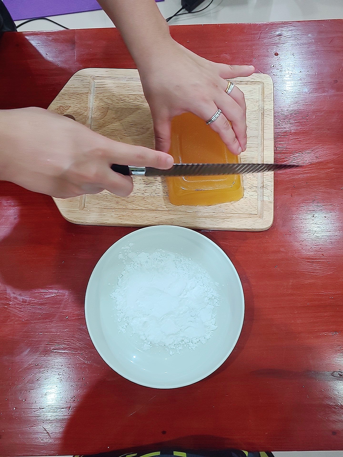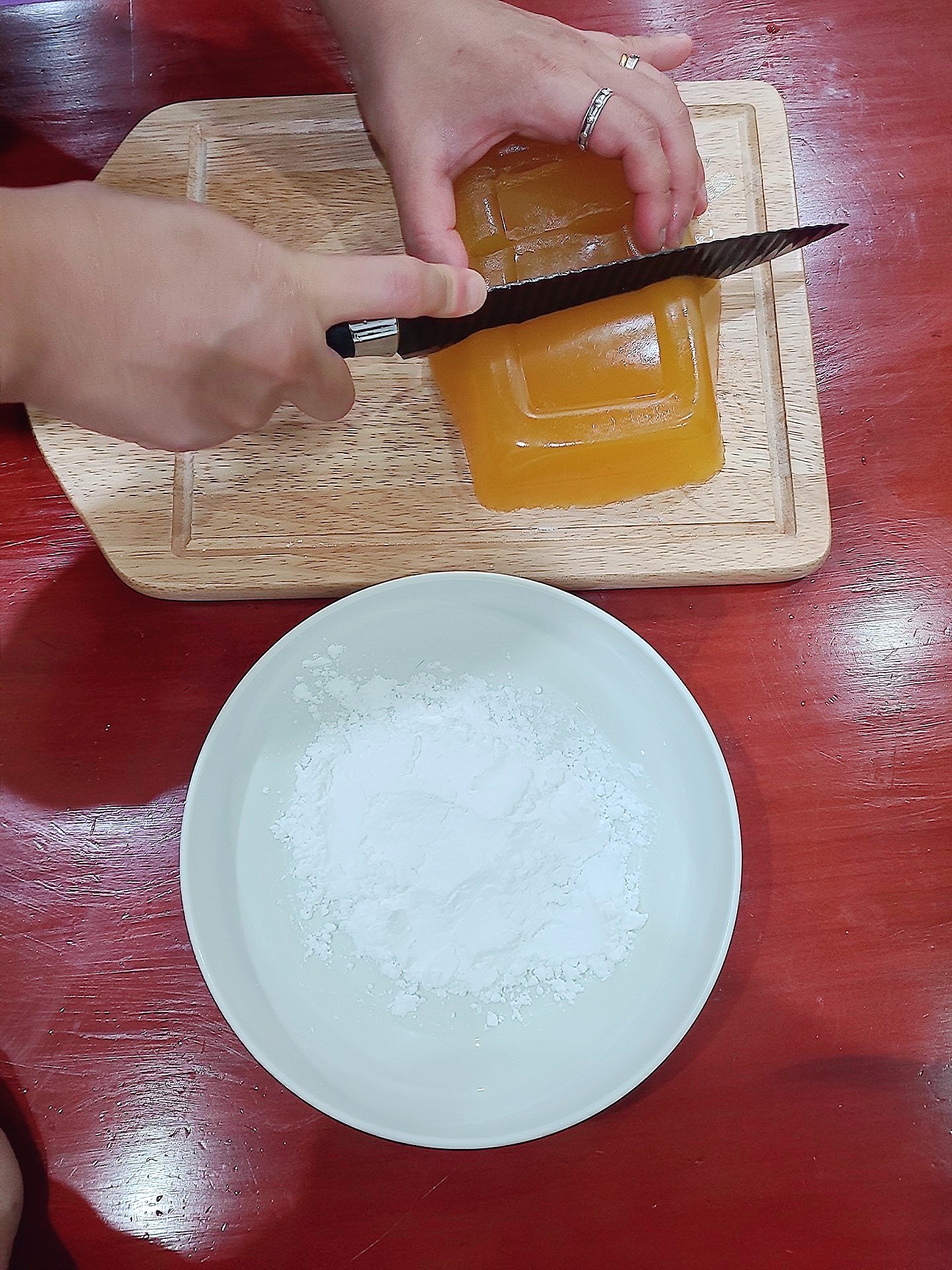 칼질 정말 어렵더라...;; 젤라틴 때문인 건가?