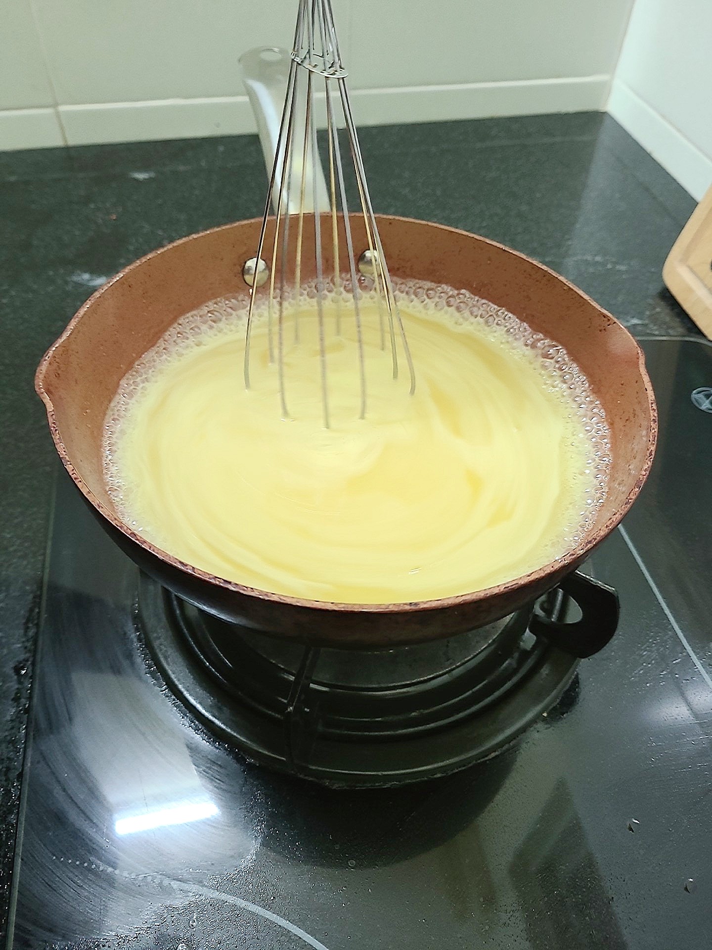 센 불로 끓이며 조금씩 젓기 시작.