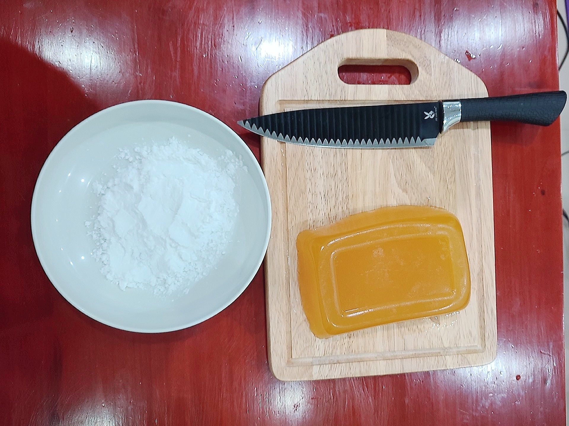 원래 진짜배기 레시피는 젤라틴 없이 전분만 하루 종일 저어서 만드는 거라고 들었는데...