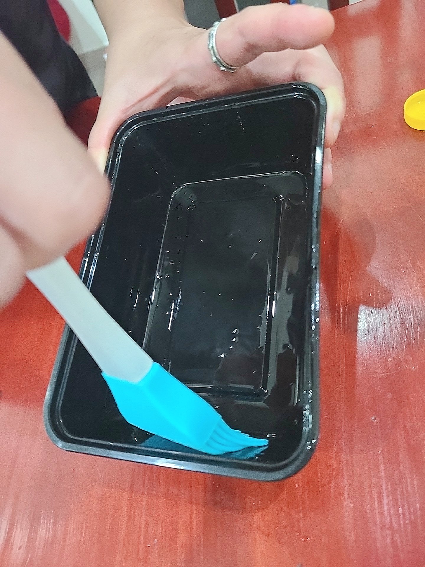 일단 식용유를 꼼꼼하게 바르고 랩을 씌웠다.