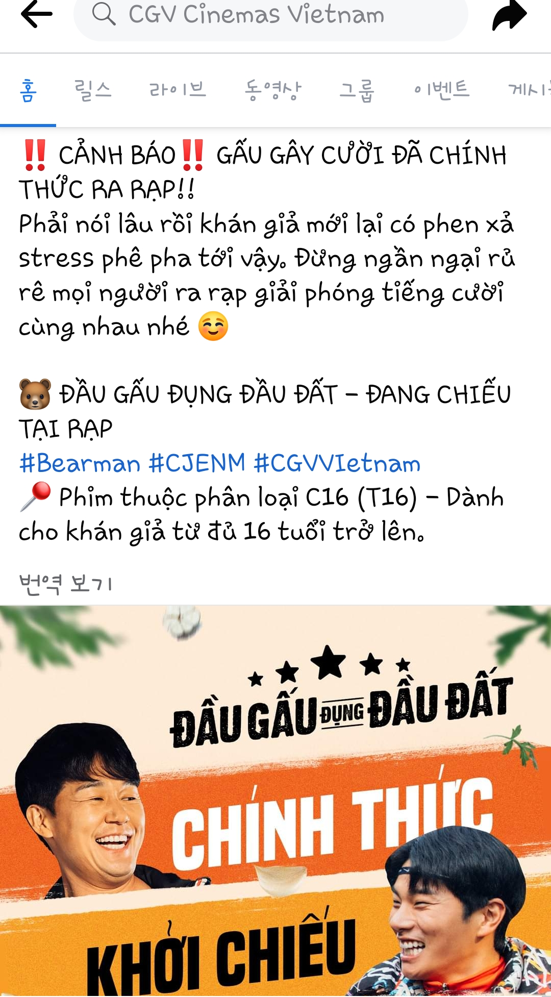 CGV베트남 페이스북 페이지에서 열심히 홍보중이네???