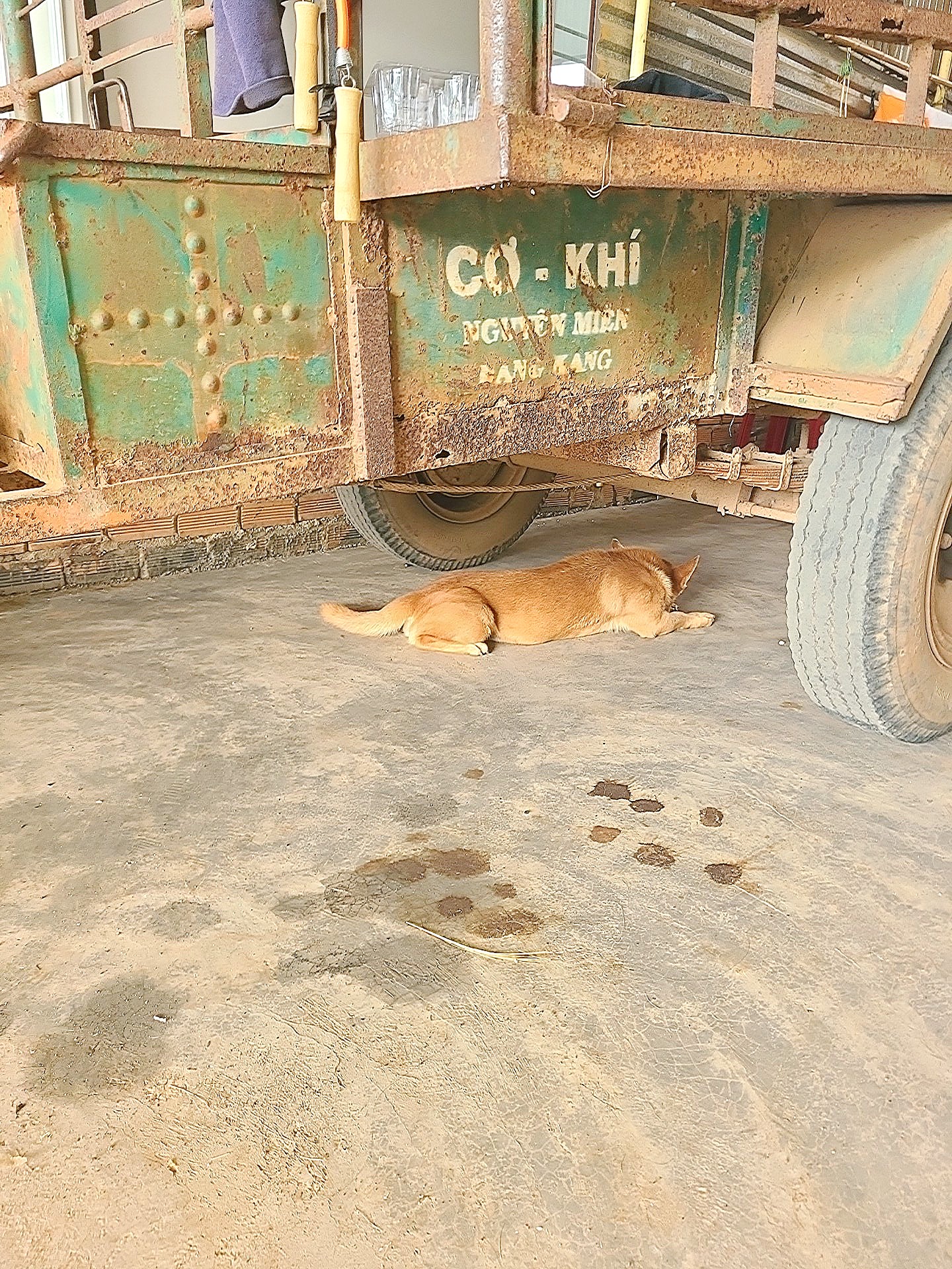처가댁에서 기르는 개, 룬(Lùn)은 이른 오전에는 대문 근처에 누워있지만, 해가 슬슬 올라오는 시점부터는 전부 이런 그늘이 축 늘어져있다.