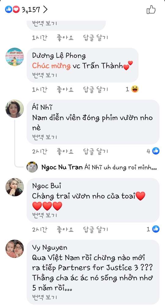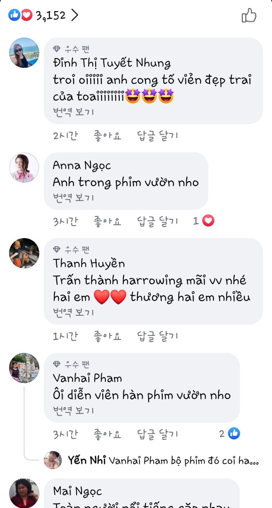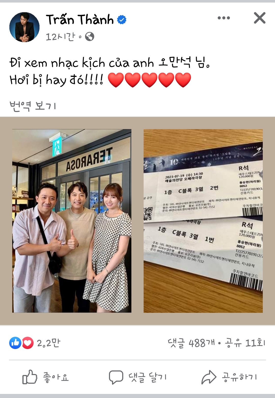 베트남에서 유재석 급의 국민mc이자, 한베혼혈로 유명한 연예인 하리원의 남편 쩐 타잉(Trấn Thành)이 올린 사진 한 장이다.