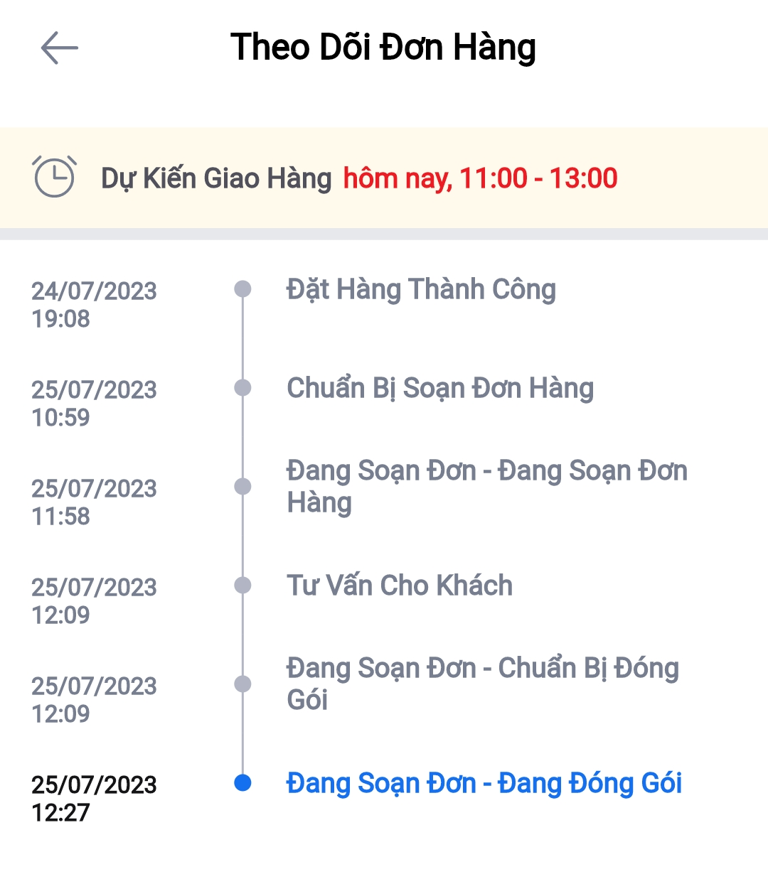 어째 '배달 진행사항'에서 "Tư vấn cho khách"이라는 이상한 멘트가 있더라니.