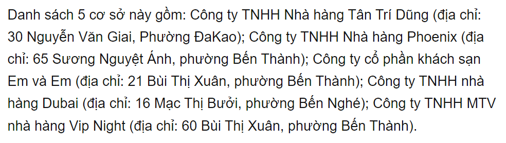 Chiều tối 24/7, Phòng Cảnh sát hình sự Công an TP Hồ Chí Minh cho biết, bằng các biện pháp nghiệp vụ đã phát hiện nhà hàng Gallery, số 160 Bis Bùi Thị Xuân, phường Phạm Ngũ Lão, quận 1 có biểu hiện ho