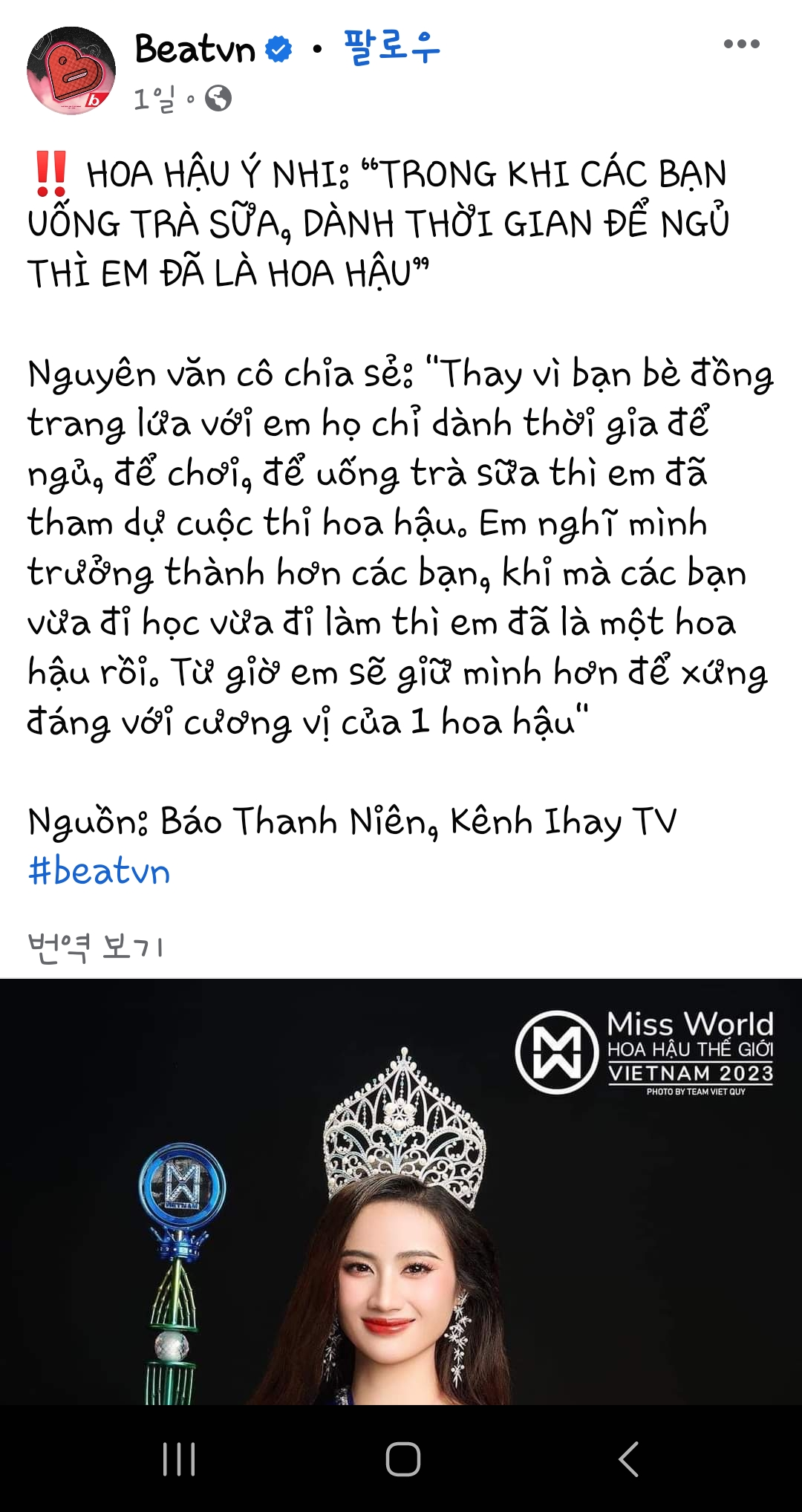 원래도 베트남 미인대회 관련 기사나 포스팅이 페북에 자주 올라오는 편이었고,