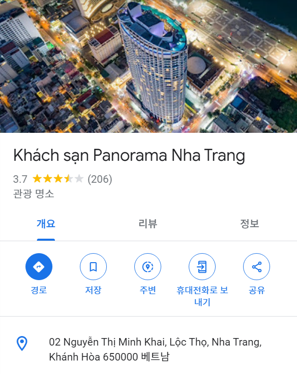 냐짱(나트랑) 야시장 바로 옆에 우뚝 솓은 빌딩, 파노라마(Panorama)의 주소이다.