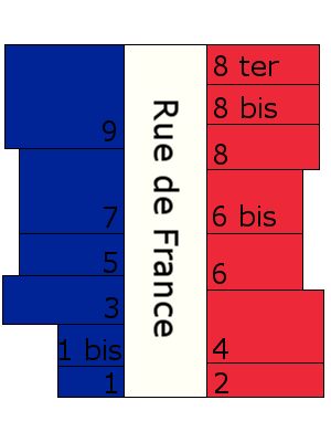 Rue de France길 주소지가 이렇게 있다고 가정을 하자.