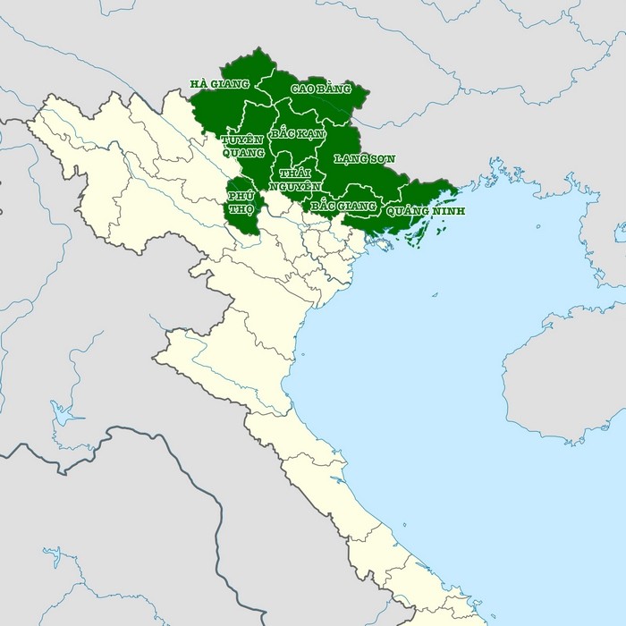 그러나 사람에 따라서는 라오까이(Lào Cai) 성, 옌바이(Yên Bái) 성을 동북부에 넣기도 한다.