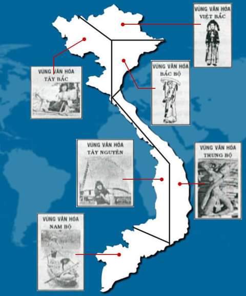 6. Vùng văn hóa Nam Bộ : 동나이 일대부터 서쪽의 델타 지역. 기존의 크메르 계통부터 베트남의 남진, 그리고 화족(華族)들의 유입 등 역사적인 환경과 자연 환경이 결합되어 형성된 문화권.