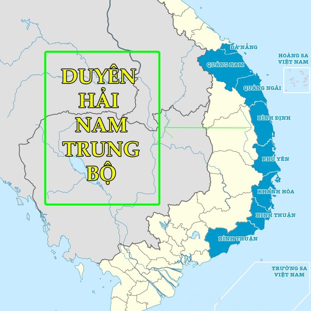 - 보통 북중부와 함게 '중부 연해[Duyên hải Trung Bộ]'로 통칭하는데, 이처럼 남과 북으로 구분하는 경우 다낭에서 훼로 넘어가는 '하이번 고갯길'을 그 경계로 삼는다.