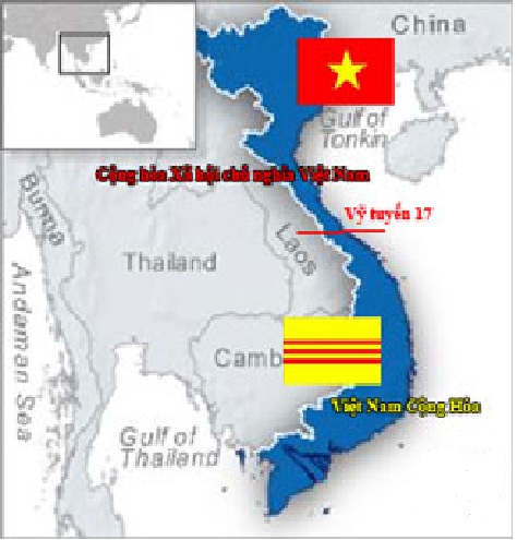 남쪽의 '베트남 공화국(Việt Nam Cộng hòa)'과 '베트남 민주공화국(Việt Nam Dân chủ Cộng Hòa)'로 나뉘어졌다.