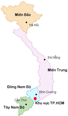 - 남부(Miền Nam) : 동남부(Đông Nam Bộ), 구룡강[메콩강] 삼각주(Đồng bằng Sông Cửu Long)
