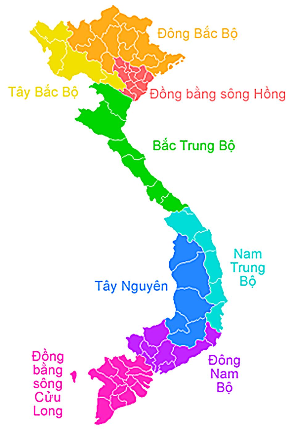 베트남에서 가장 많이 사용되는 지역 구분법은 아래의 8개 지역 구분이다.
