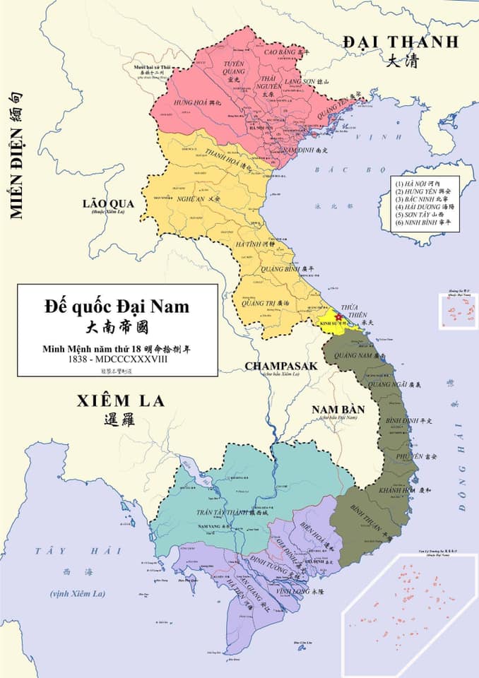 1834년 민망황제는 북부 13개성(Hà Nội, Sơn Tây, Hưng Hóa, Tuyên Quang, Cao Bằng, Lạng Sơn, Quảng Yên, Hải Dương, Bắc Ninh, Hưng Yên, Nam Định, Ninh Bình, Thái Nguyên)을 묶어서 Bắc Kỳ(北圻)로,