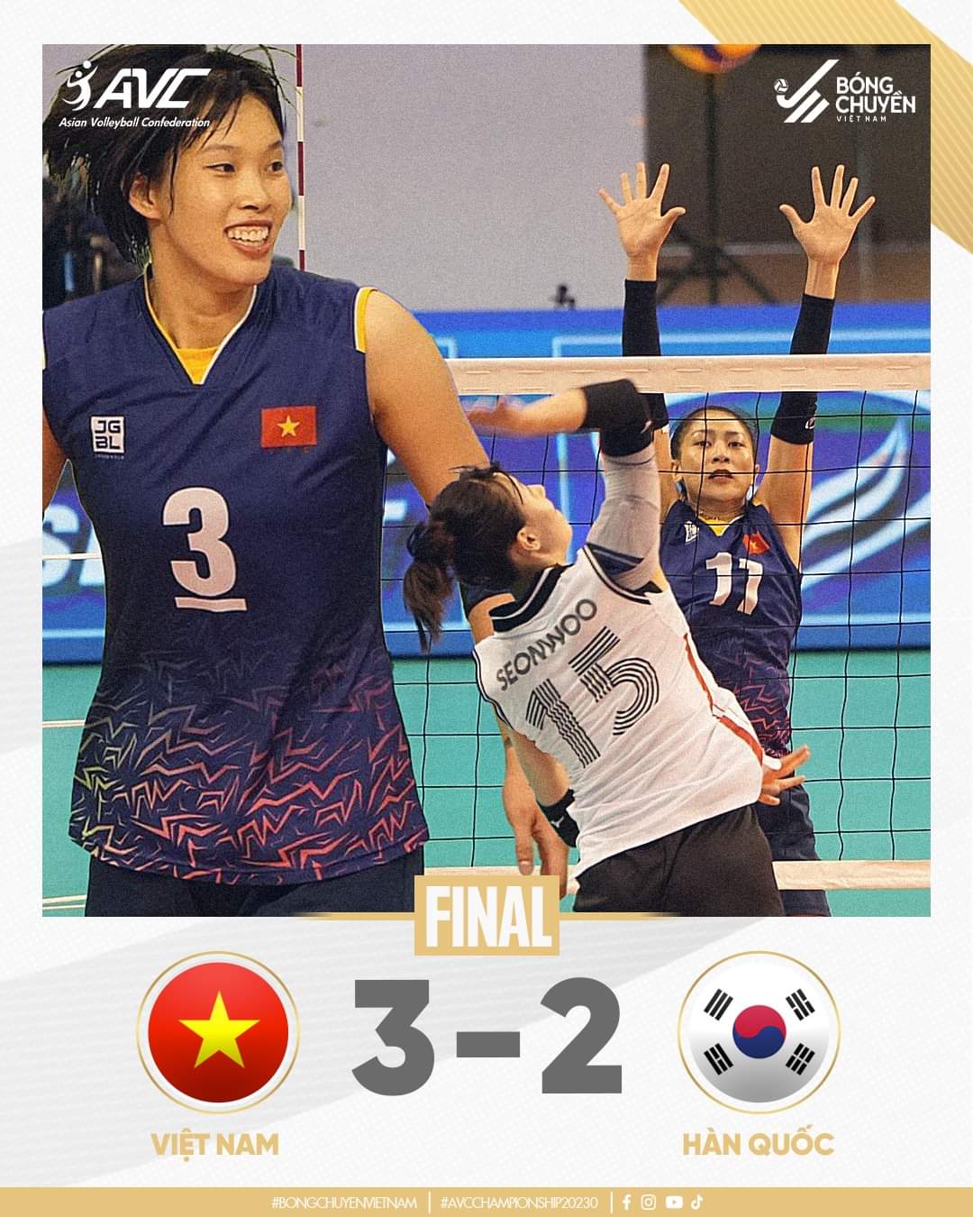 (Dân trí) - Bị dẫn trước 2-0, tuyển bóng chuyền nữ Việt Nam có màn lội ngược dòng không tưởng, thắng 3-2 trước Hàn Quốc trong trận ra quân tại giải vô địch châu Á 2023.
