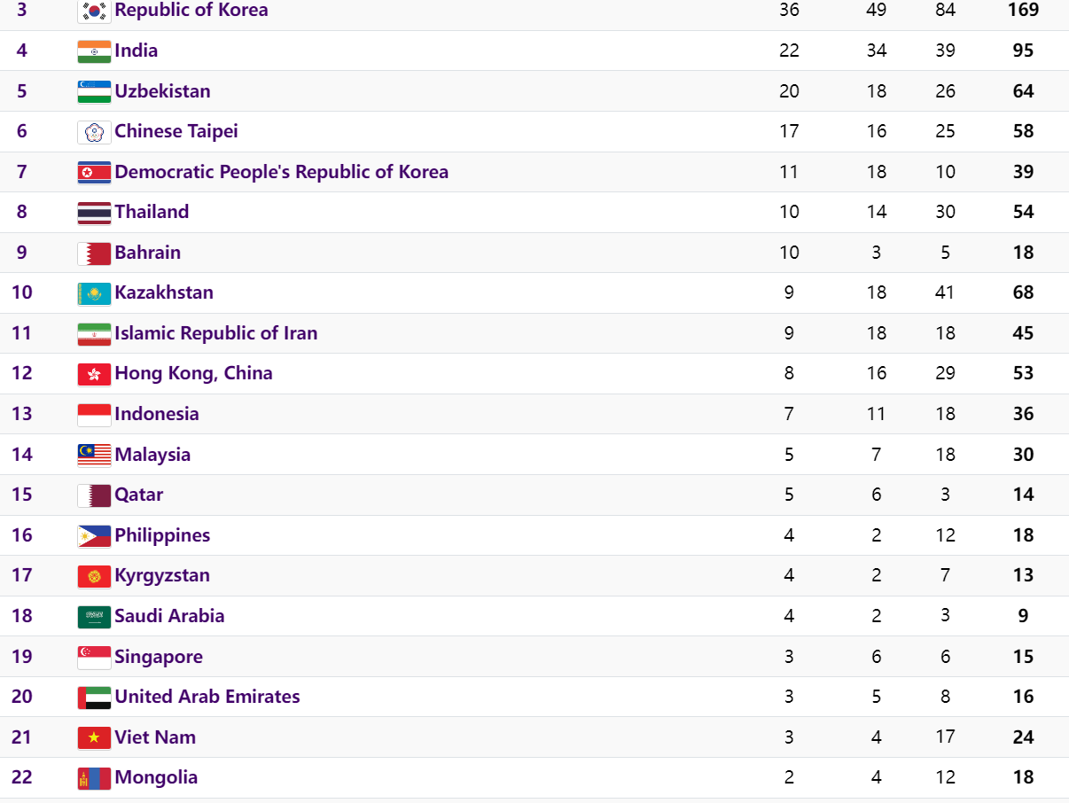 | 폐막을 앞둔 항저우 아시안게임 베트남의 최종 순위와 성적 (1) | 2023.10.08 |