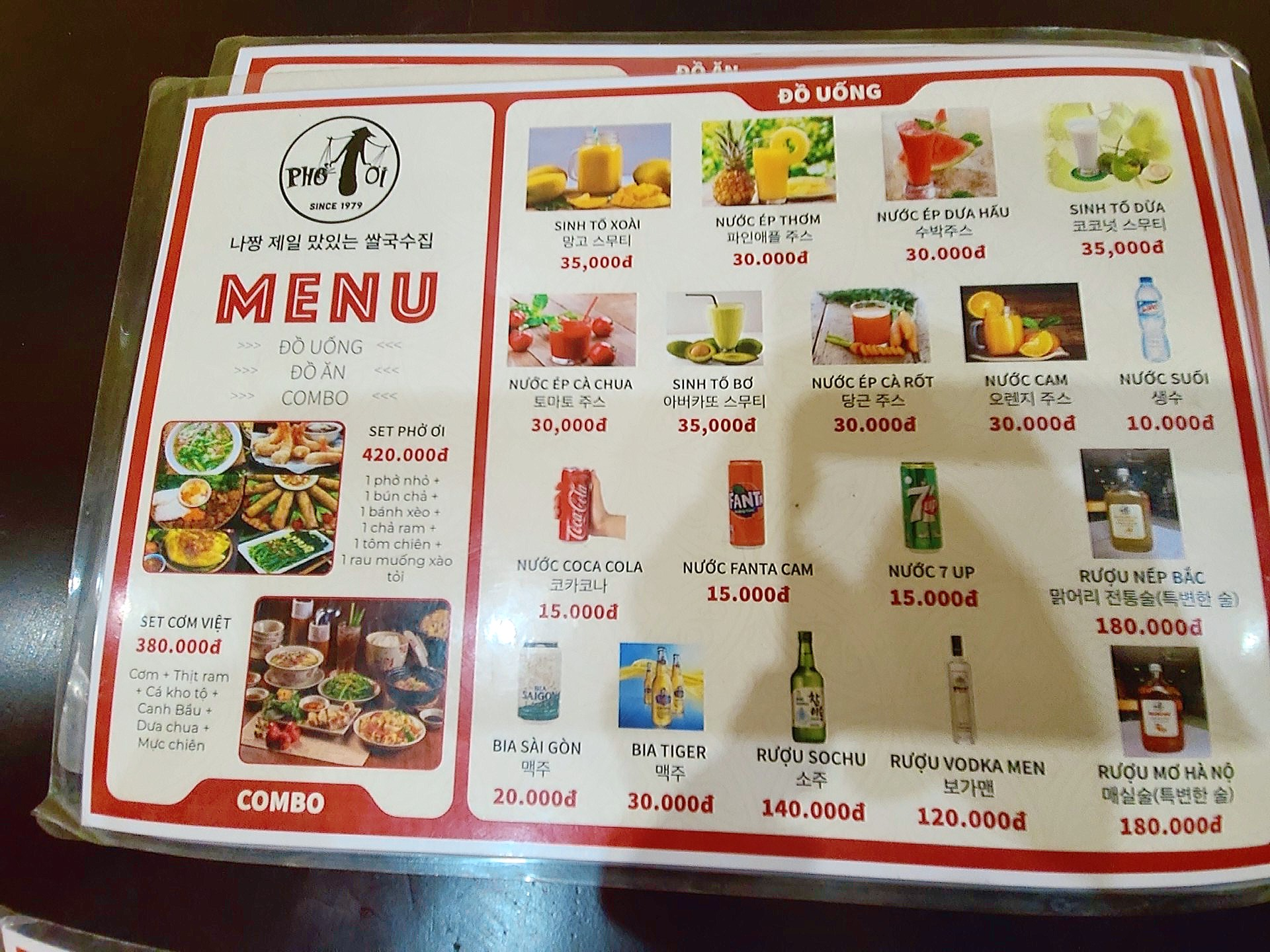1) 이름이 Phở ơi(퍼 어이, "쌀국수야!"라는 뜻)라서 여러 종류의 phở들이 메인일 거라고 생각했는데, phở는 두 종류 뿐이어서 아쉬웠다.