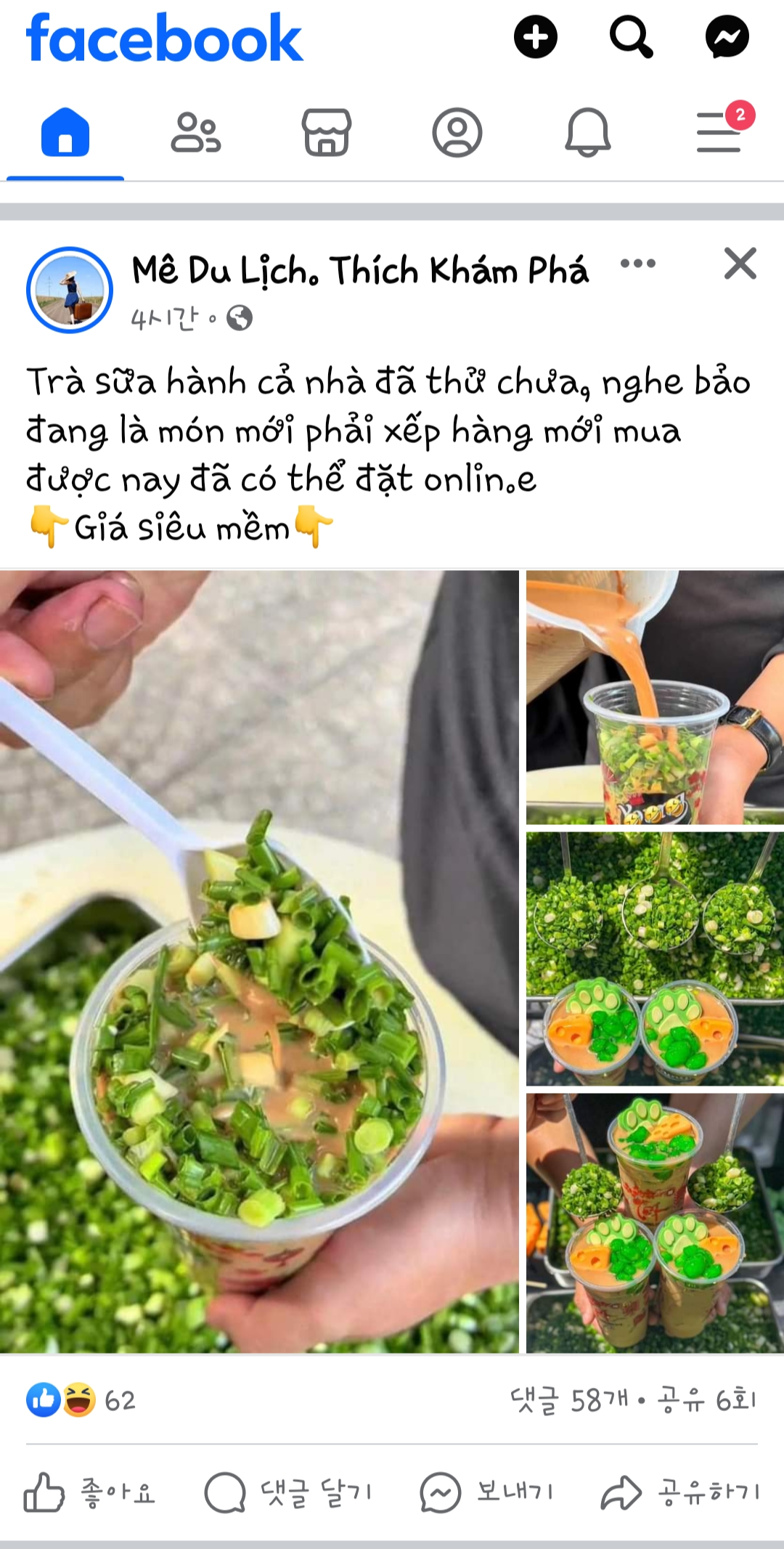 베트남의 밀크티...Trà sữa에 쪽파를 미친 듯이 올려서 먹는 Trà sữa hành lá가 유행한다는 이상한 게시글.
