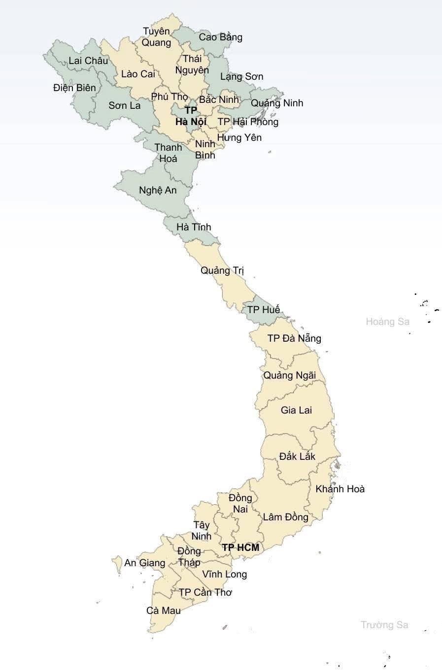 향후 지방 성시 통합이 완료되면, 베트남 지도는 이런 모양이 된다.