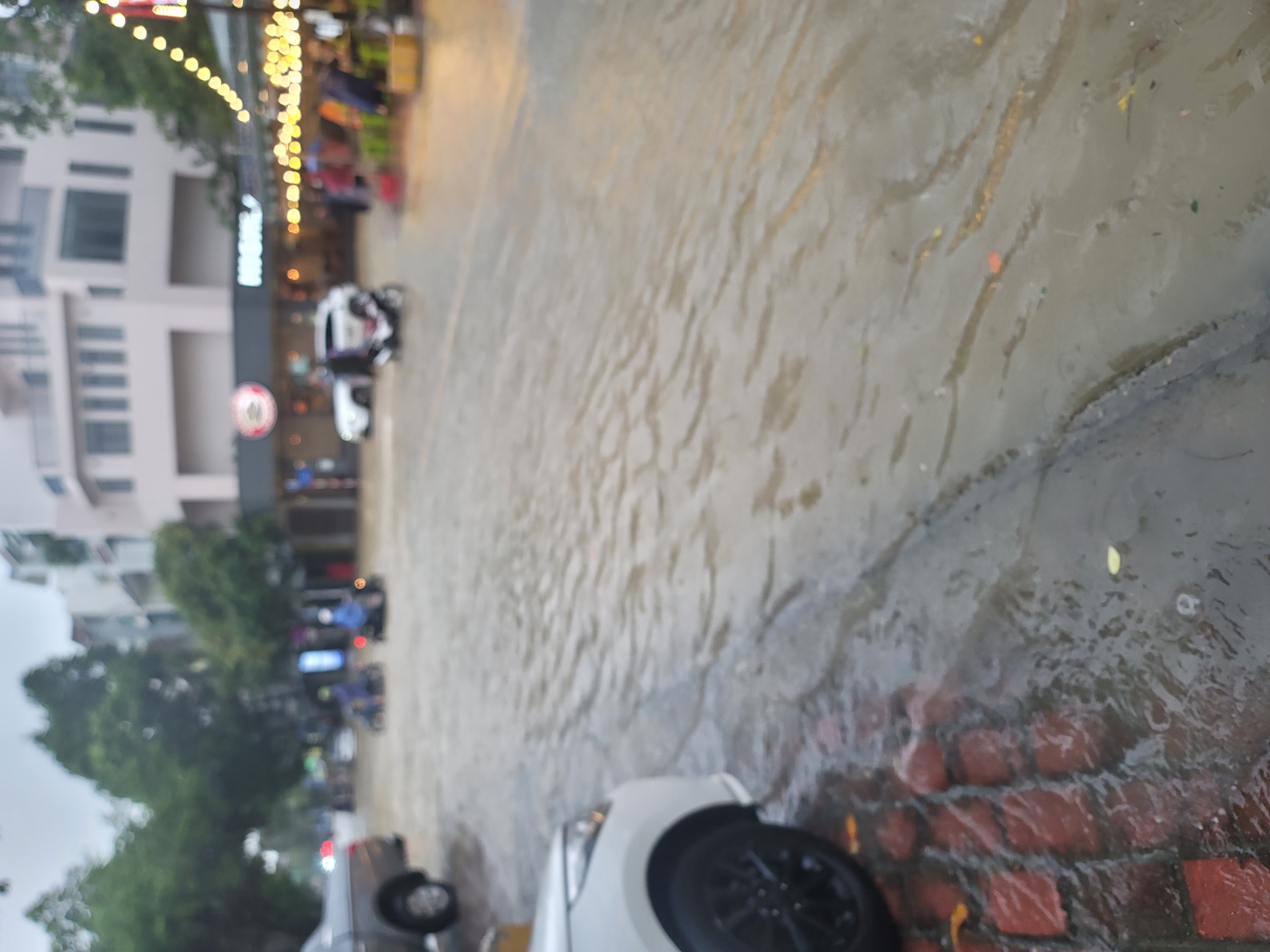 나처럼 걷는 사람, 오토바이 끌고 지나가는 사람, 어떻게든 타고 지나가는 사람, 고장은 뒤에 생각하고 일단 푹 잠긴 도로를 지나가는 사람 등등...