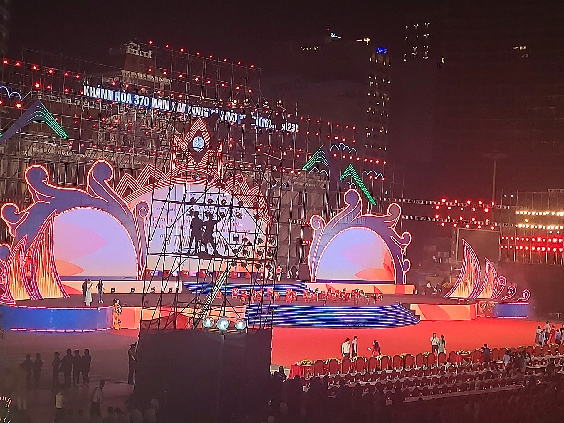 공연장에서 사람들이 분주하게 준비를 하기 시작했다.